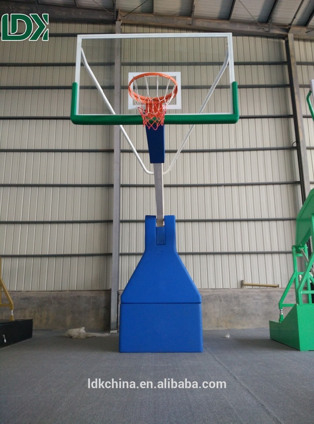Model NO. LDK10000 is a premium basketball hoop system featuring a robust base. Boasting a 3.25m extension, it offers a spacious backboard framed in durable aluminium alloy, shielded by certified tempered glass that shatters safely without splintering.