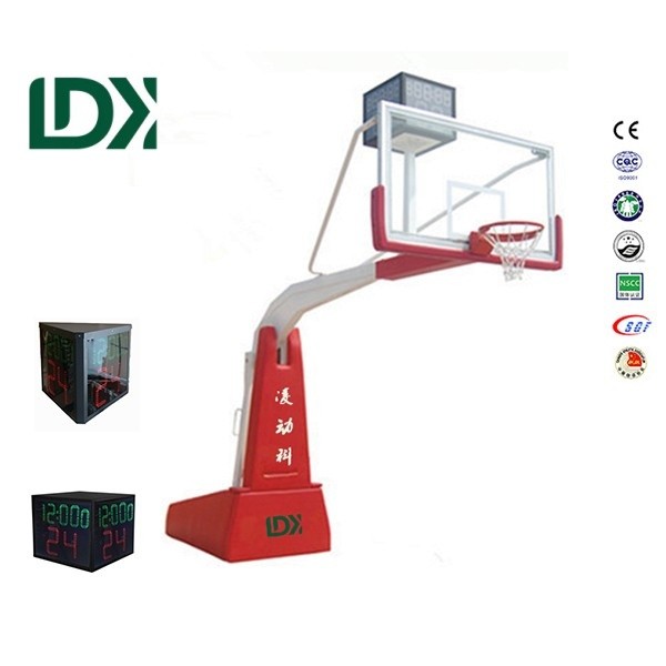 Elevate your game with the premium LDK1000A Electric Hydraulic Basketball Stand, combining innovation and durability. Featuring a certified 12mm tempered glass backboard (1800x1050mm) framed in robust aluminum alloy, this stand ensures superior rebound performance and safety. The heavy-duty high-grade steel base (1950x1150x700mm) and reinforced steel rim guarantee stability for intense play.