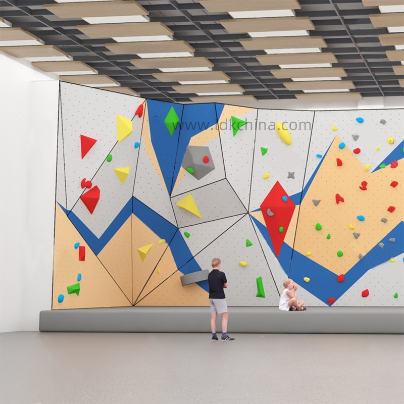 ผนังปีนแบบไฮบริดนี้รวมส่วนทรงและเรียบ สําหรับความท้าทายการฝึกซ้อมที่หลากหลายให้ความทนทานและความสวยงาม.กรอบเหล็กสามเหลี่ยมให้ความมั่นคงที่ไม่มีคู่แข่ง ขณะที่การออกแบบแบบจําลองทําให้การติดตั้งง่ายทําให้มันเหมาะสมสําหรับทั้งห้องออกกําลังกายภายในและสวนผจญภัยกลางแจ้ง.